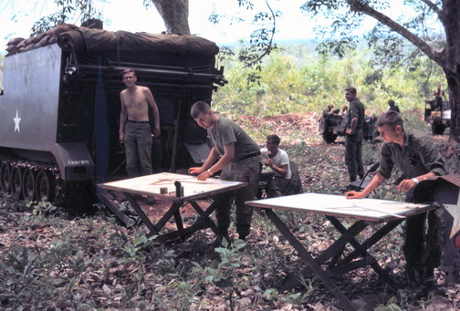 Mobile FDC on the road Maps, charts, tables, slide rules are all necessary to provide the guns with the necessary data to hit a target Adin Tooker Photo