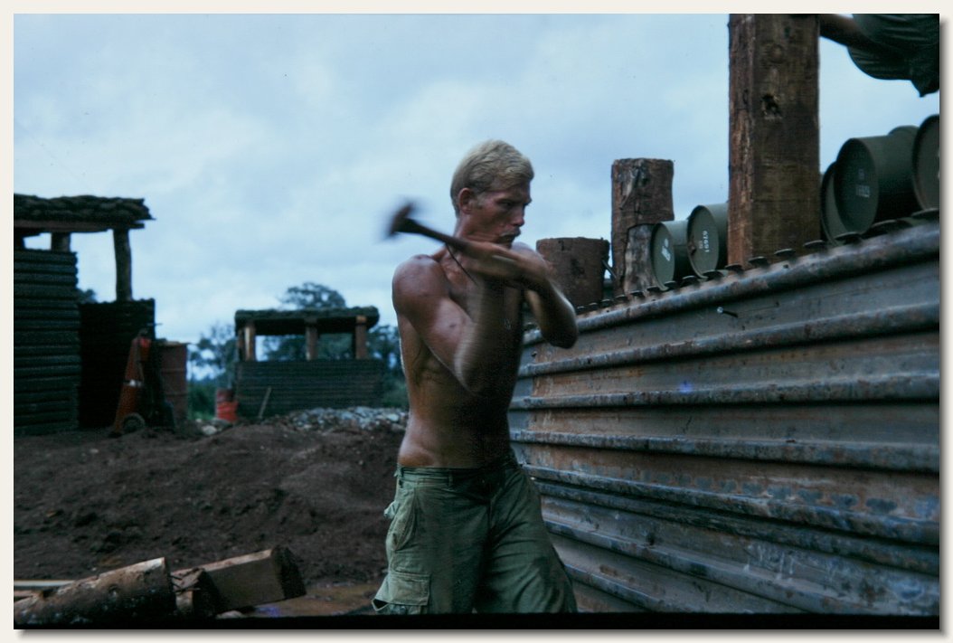 Me driving spikes, building a bunker at Bu Dop